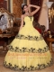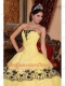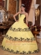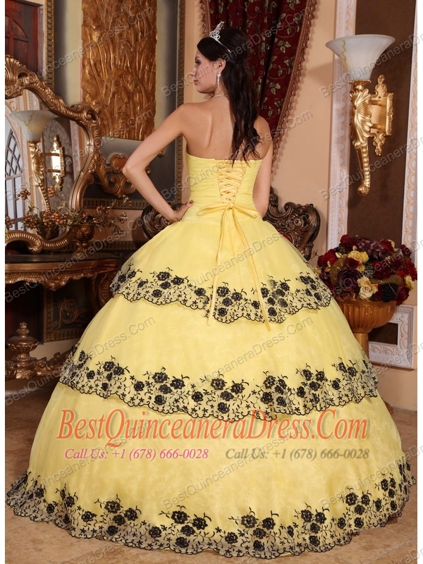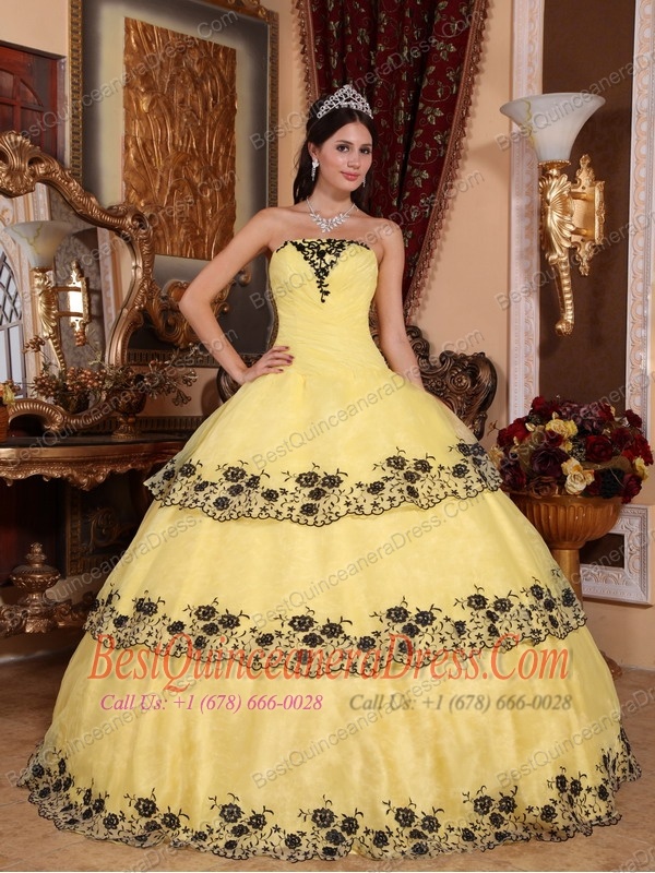 Yellow Ball Gown Strapless Floor-length Organza Lace Appliques Quinceanera Dress