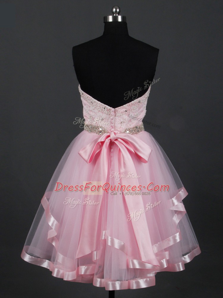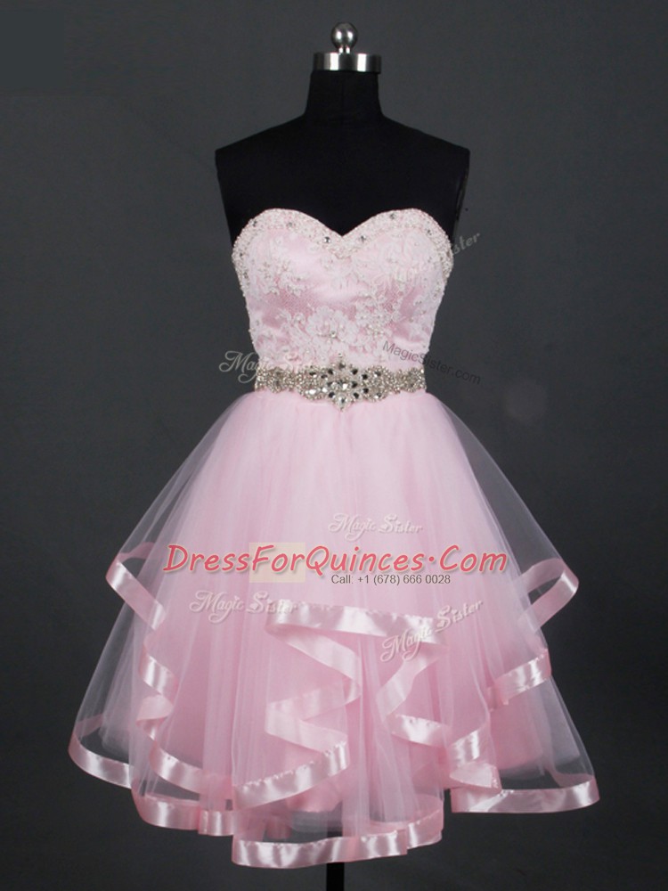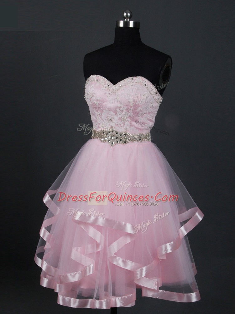 Beading and Lace and Ruffles Quinceanera Court of Honor Dress Baby Pink Zipper Sleeveless Mini Length