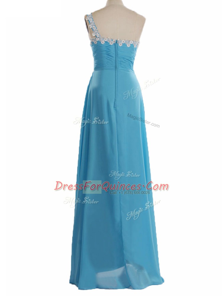 Chiffon One Shoulder Sleeveless Zipper Appliques Quinceanera Court of Honor Dress in Aqua Blue