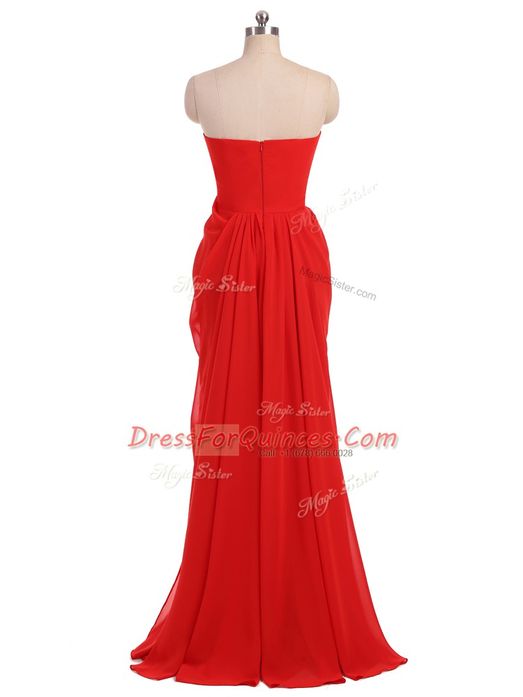 Floor Length Red Vestidos de Damas Strapless Sleeveless Zipper