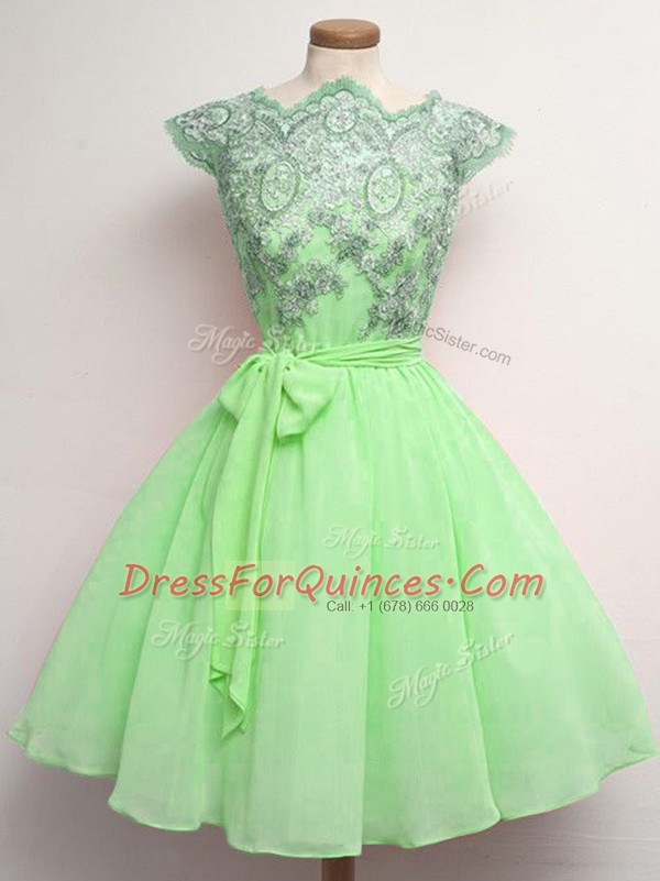 Lovely Scalloped Neckline Lace and Belt Quinceanera Court of Honor Dress Cap Sleeves Lace Up