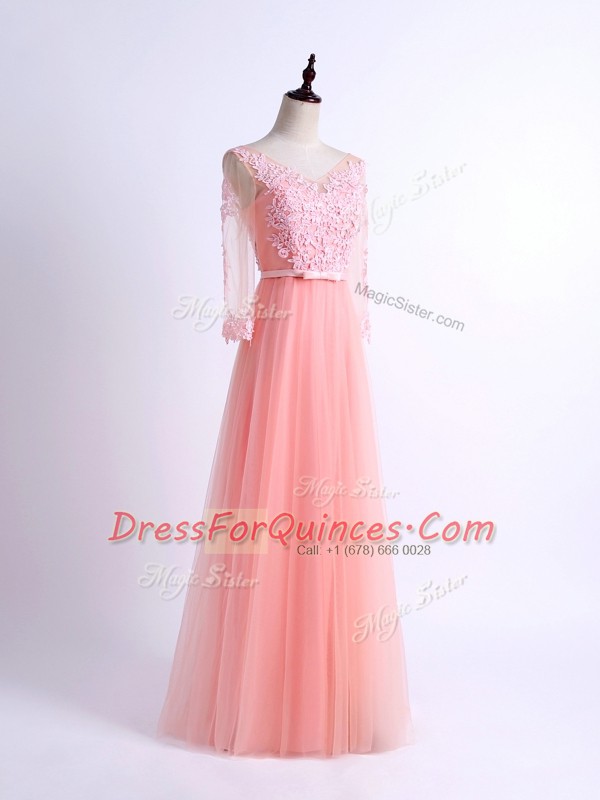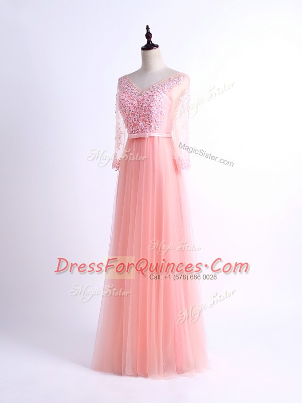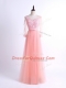 Low Price Pink Tulle Lace Up Damas Dress Half Sleeves Floor Length Lace