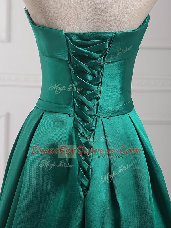 Luxurious Dark Green Court Dresses for Sweet 16 Prom and Party and Wedding Party with Belt Strapless Sleeveless Lace Up