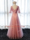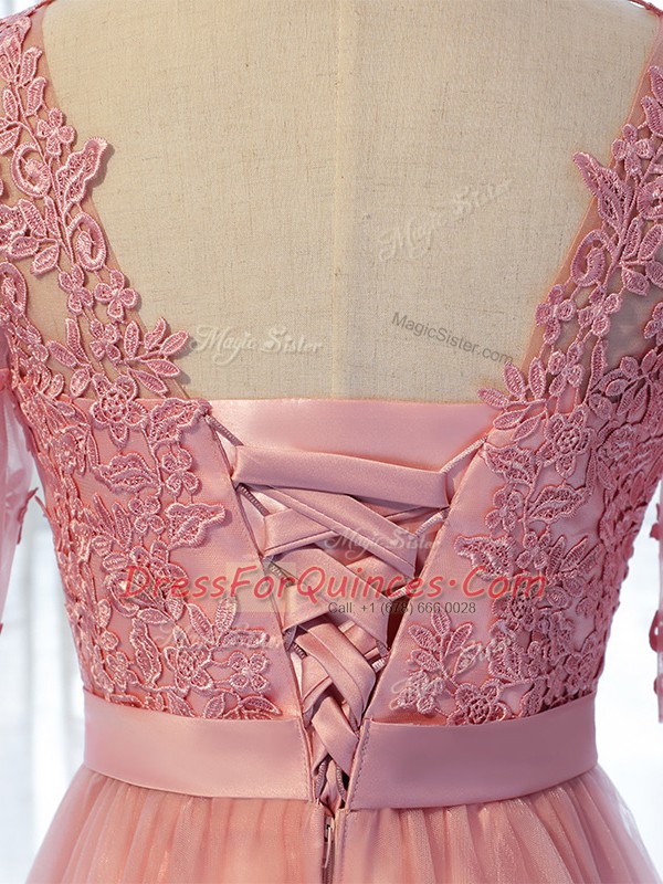 Spectacular Scoop Half Sleeves Lace Up Vestidos de Damas Pink Tulle