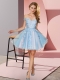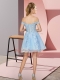 Sumptuous Light Blue Tulle Zipper Off The Shoulder Sleeveless Mini Length Dama Dress Appliques