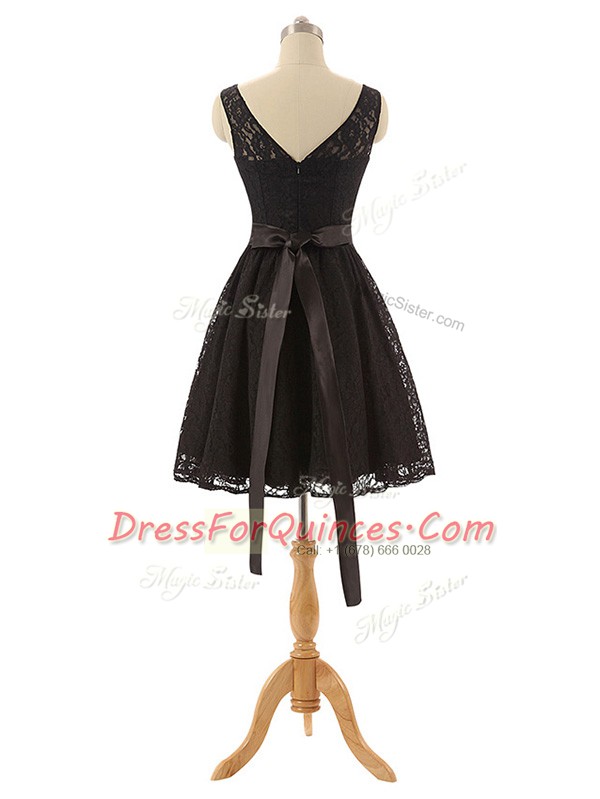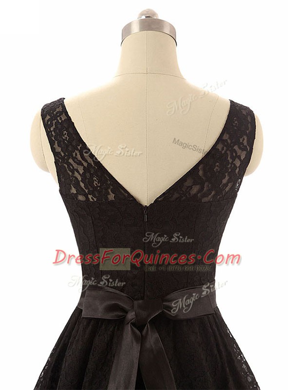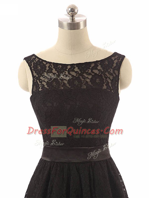Vintage Empire Dama Dress Black Bateau Lace Sleeveless Mini Length Zipper