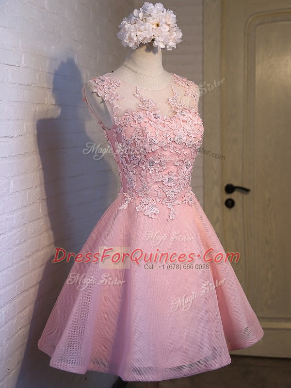 Vintage Pink Scoop Lace Up Lace Quinceanera Court of Honor Dress Sleeveless