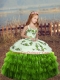 Customized Floor Length Lace Up Little Girl Pageant Gowns Green for Party and Wedding Party with Embroidery and Ruffled Layers