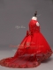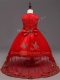Eye-catching High Low Zipper Pageant Gowns For Girls Red for Wedding Party with Lace and Bowknot