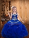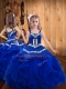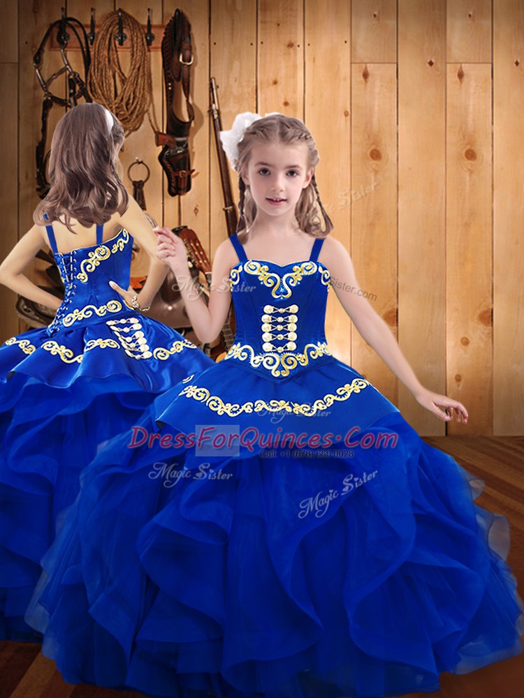 Floor Length Royal Blue Pageant Gowns For Girls Straps Sleeveless Lace Up