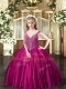 Fuchsia Lace Up Girls Pageant Dresses Beading Sleeveless Floor Length