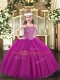 Fuchsia Little Girls Pageant Dress Party and Quinceanera with Beading Straps Sleeveless Lace Up