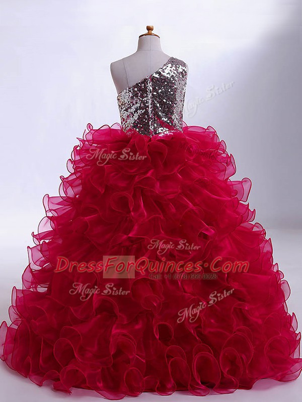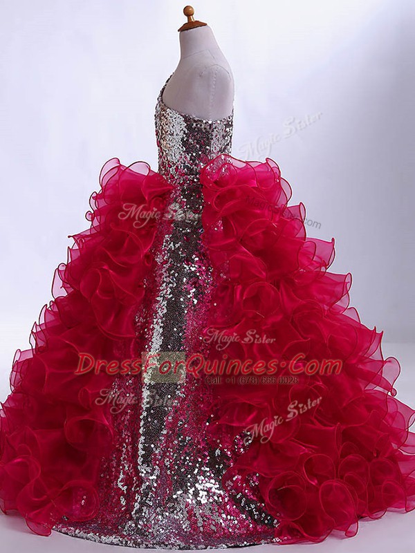 Graceful Ruffles and Sequins Little Girls Pageant Dress Wholesale Wine Red Zipper Sleeveless Floor Length