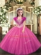 Hot Pink Ball Gowns Straps Sleeveless Tulle Lace Up Beading Kids Formal Wear