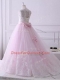 Hot Selling Tulle Scalloped Sleeveless Brush Train Lace Up Lace Pageant Gowns For Girls in Baby Pink