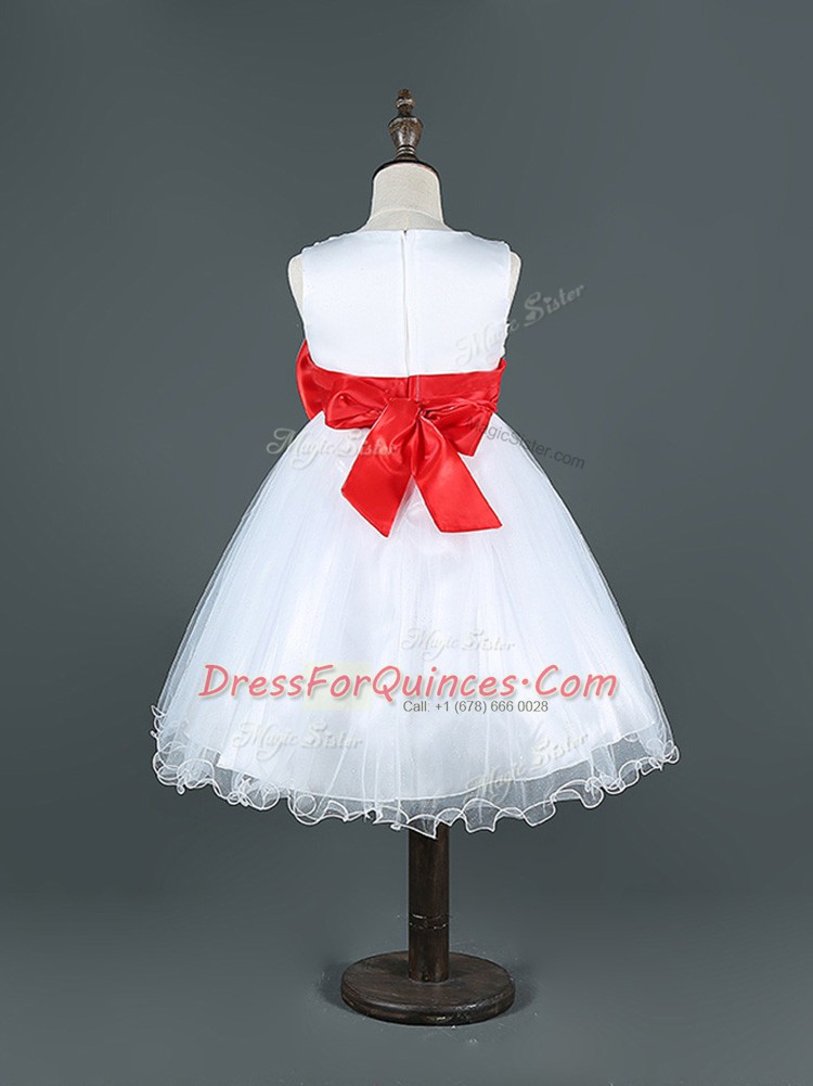 Inexpensive Scoop Sleeveless Little Girls Pageant Dress Wholesale Knee Length Bowknot White Tulle