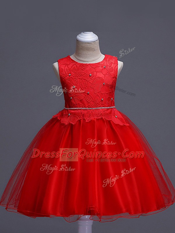 Knee Length Ball Gowns Sleeveless Red Little Girl Pageant Gowns Zipper