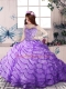 Lavender Lace Up Little Girls Pageant Dress Wholesale Beading and Ruffled Layers Sleeveless Brush Train