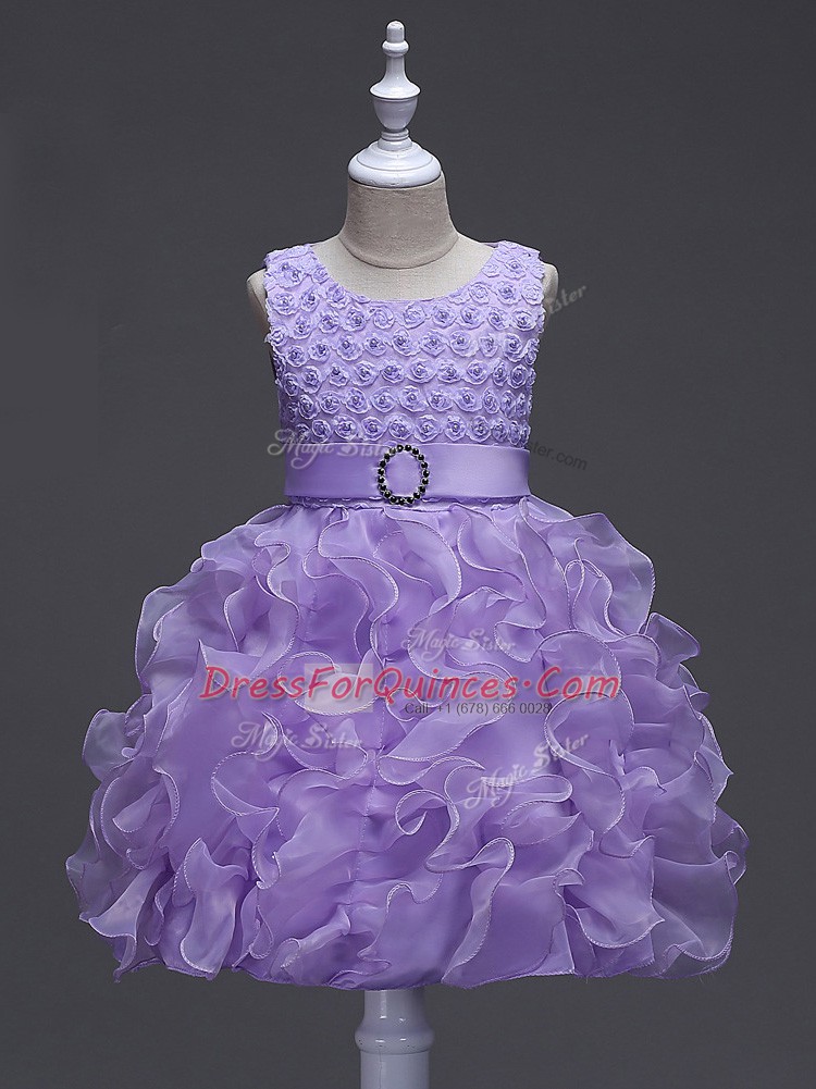 Lavender Scoop Lace Up Ruffles and Belt Pageant Gowns For Girls Sleeveless