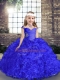 Modern Royal Blue Lace Up Little Girls Pageant Dress Beading Sleeveless Floor Length