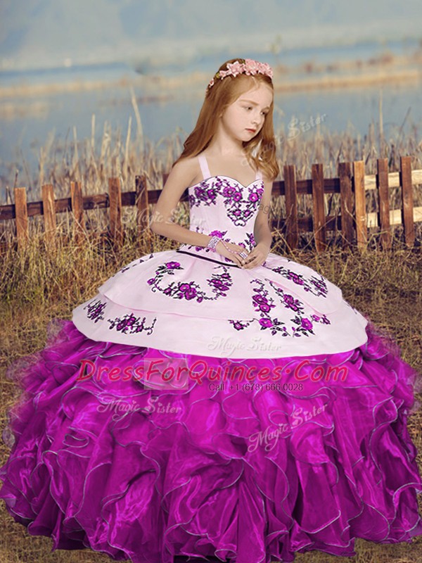 Pretty Fuchsia Sleeveless Organza Lace Up Little Girls Pageant Dress for Party and Military Ball and Wedding Party