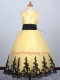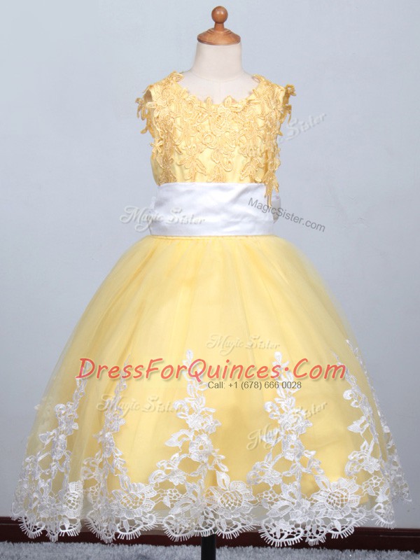 Yellow Pageant Gowns For Girls Wedding Party with Appliques Scoop Sleeveless Lace Up