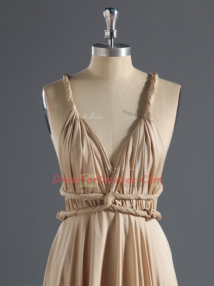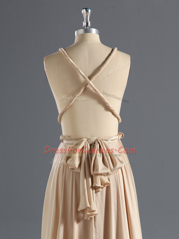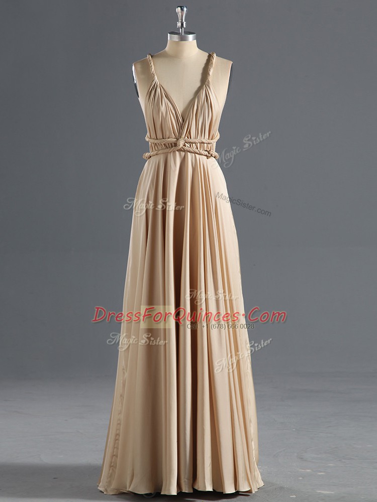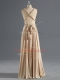 Admirable Champagne Empire Ruching Homecoming Dress Criss Cross Chiffon Sleeveless Floor Length