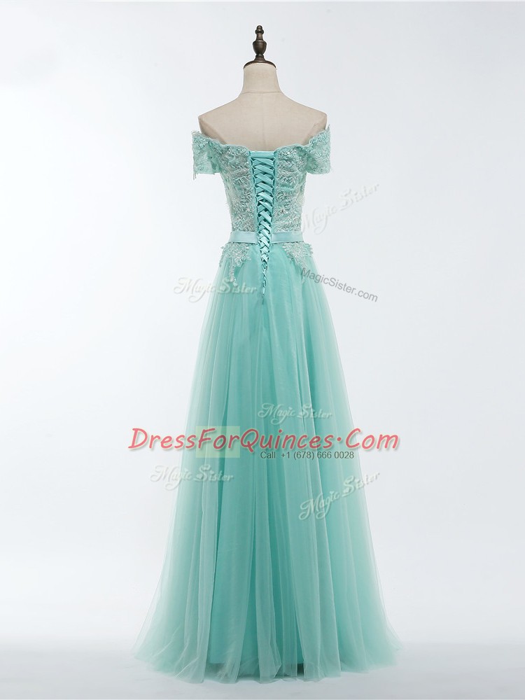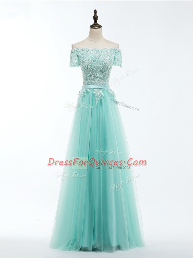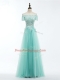 Apple Green Short Sleeves Lace and Appliques Floor Length Prom Evening Gown