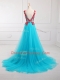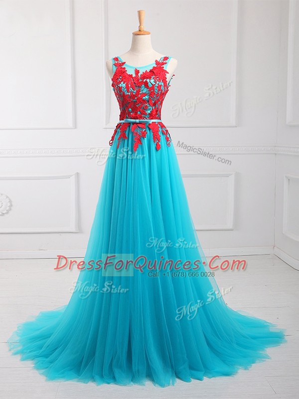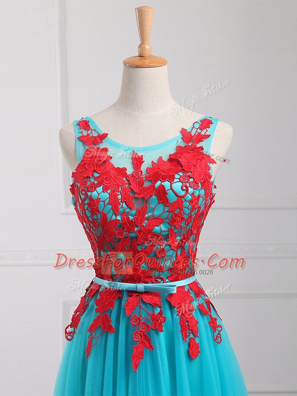 Aqua Blue Empire Lace and Appliques Prom Evening Gown Zipper Tulle Sleeveless