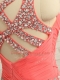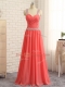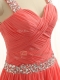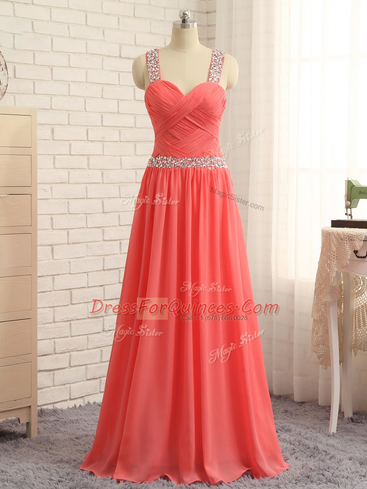 Artistic Floor Length Criss Cross Prom Evening Gown Watermelon Red for Prom and Party and Wedding Party with Beading and Ruching