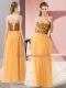 Beautiful Gold Sleeveless Tulle Lace Up Dress for Prom for Prom and Party