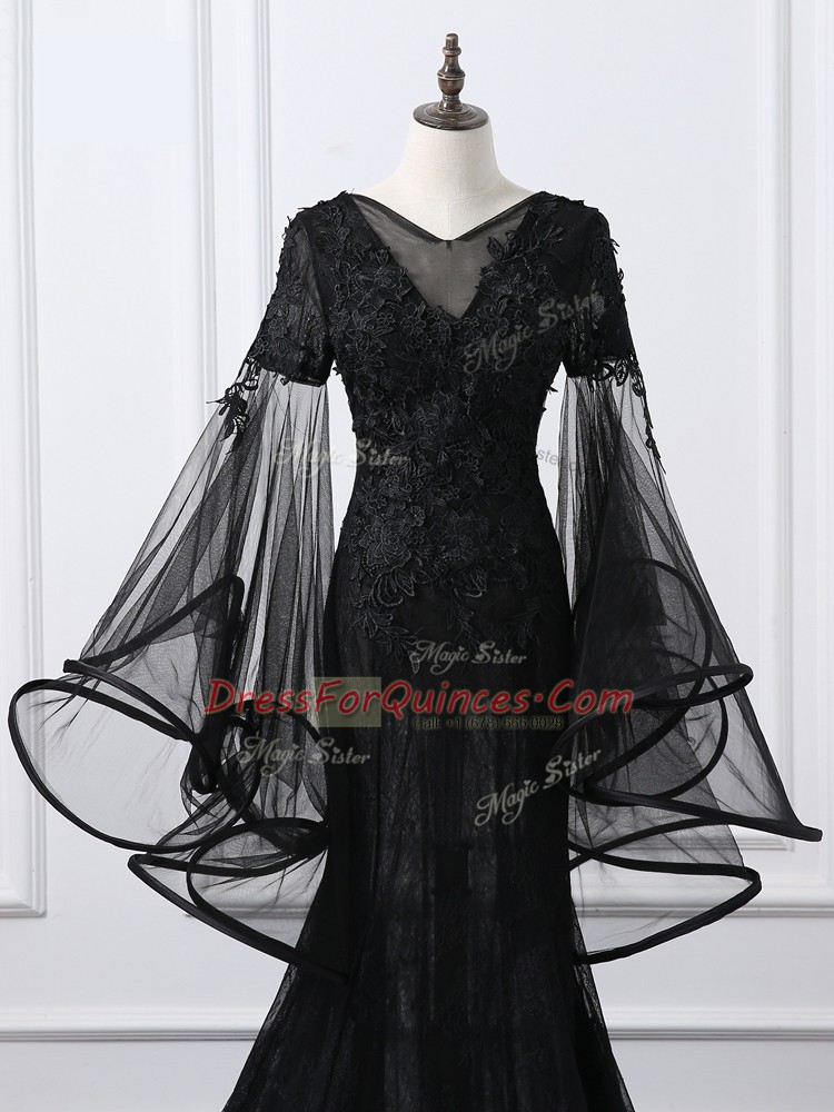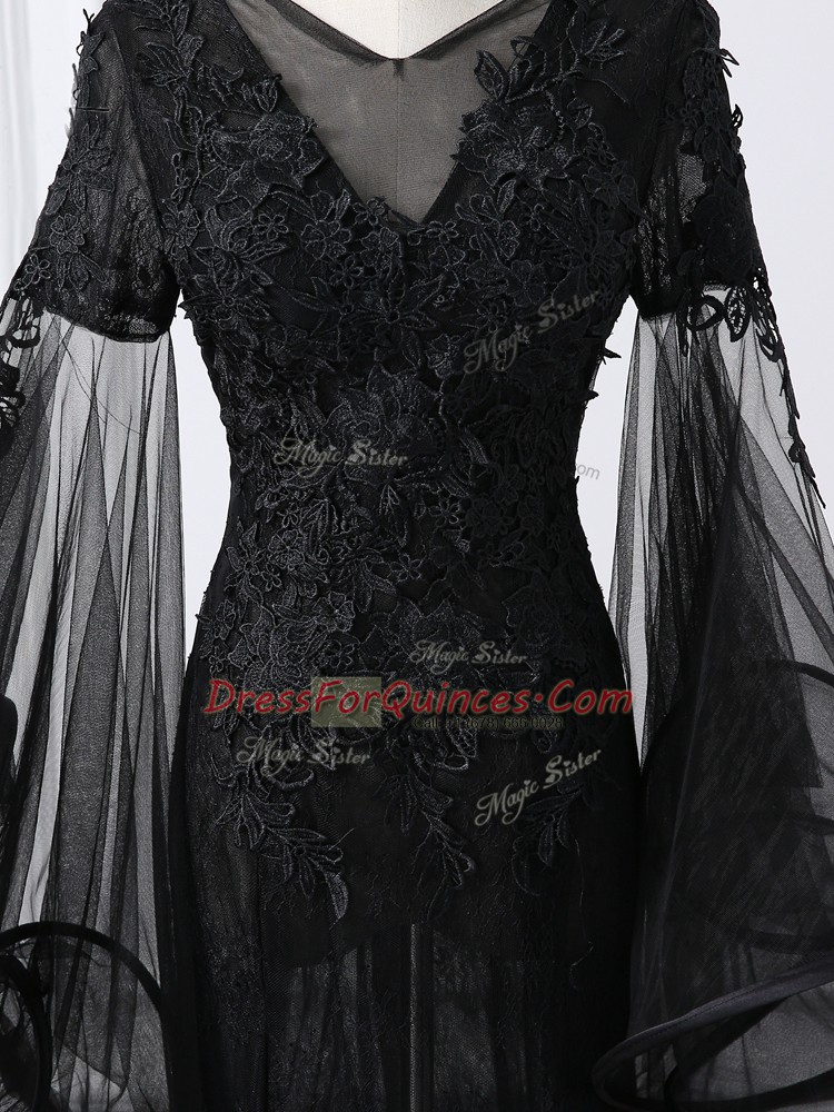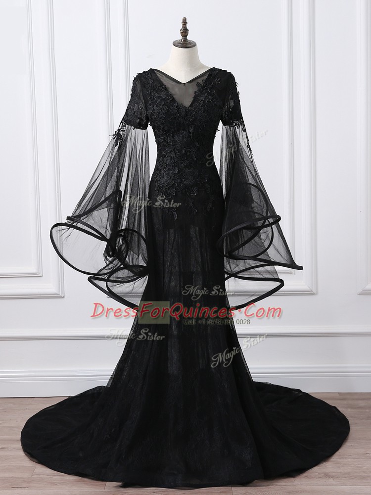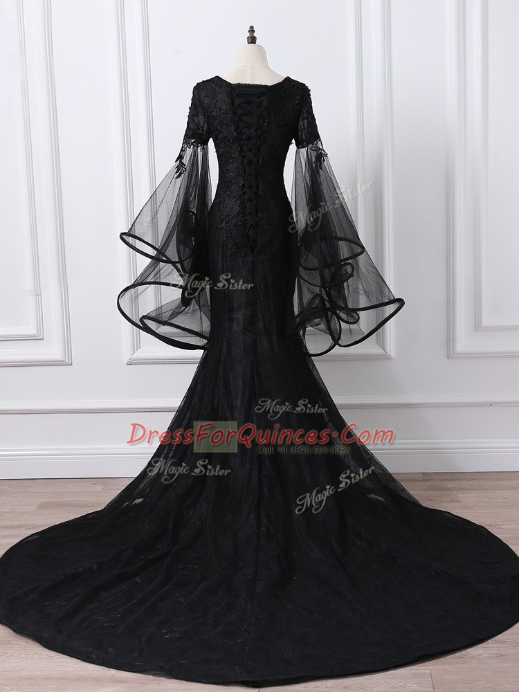 Best Selling Black Long Sleeves Tulle Brush Train Lace Up Homecoming Dress for Prom and Sweet 16