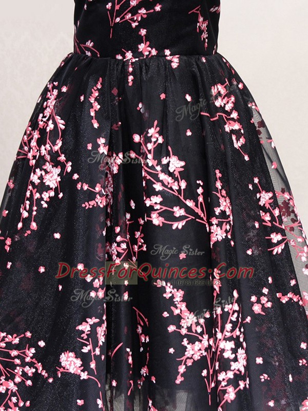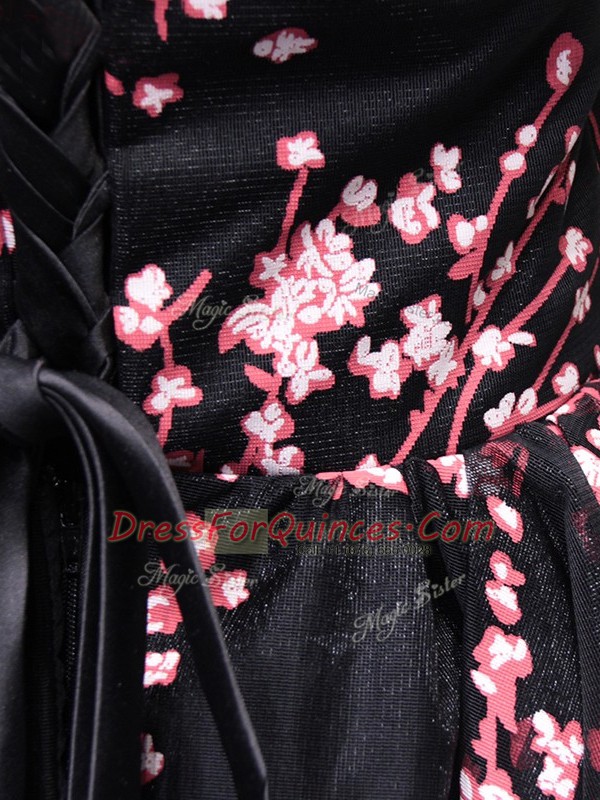 Black Lace Up Off The Shoulder Lace and Appliques Tulle Sleeveless