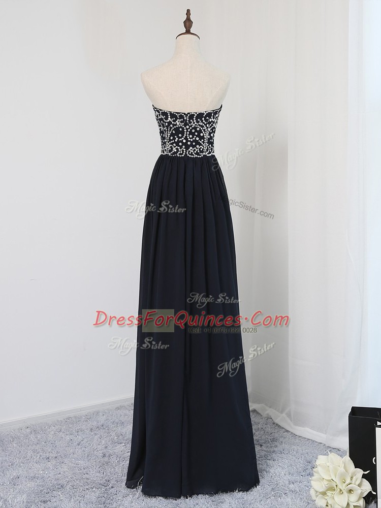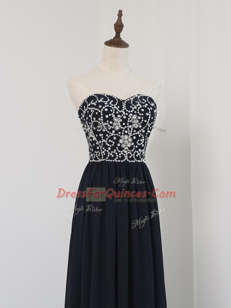 Black Zipper Sweetheart Beading Prom Party Dress Chiffon Sleeveless