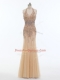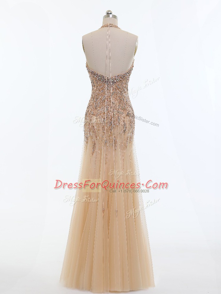 Champagne Sleeveless Floor Length Beading Backless Prom Evening Gown