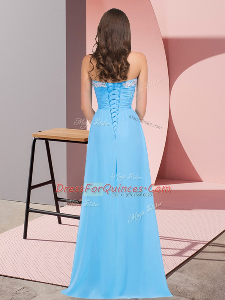 Chic Aqua Blue Empire Chiffon Sweetheart Sleeveless Ruching Floor Length Lace Up Prom Evening Gown