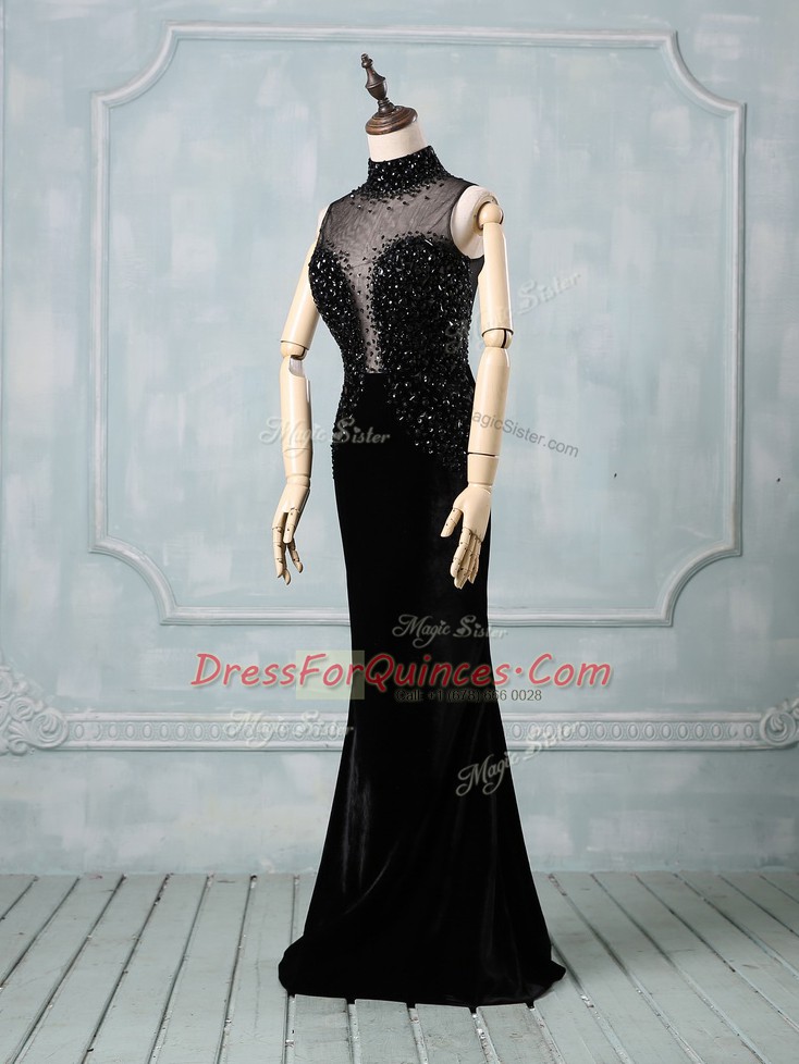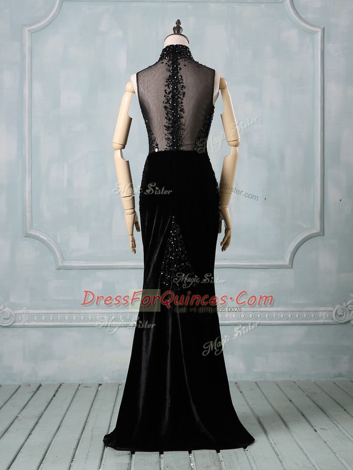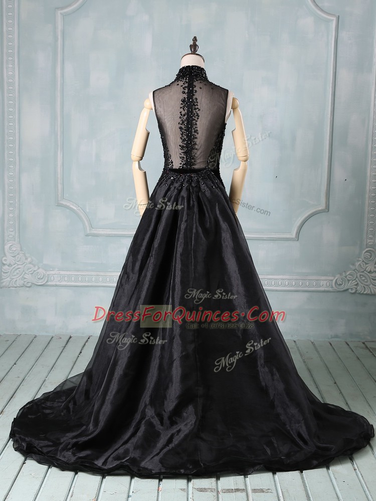 Custom Made Sleeveless Beading Zipper Prom Dresses with Black Brush Train