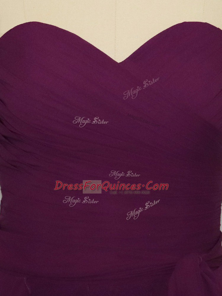 Dark Purple Chiffon Zipper Sweetheart Sleeveless Floor Length Prom Dresses Ruffled Layers and Ruching