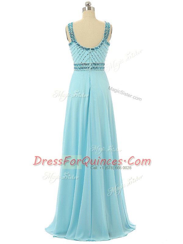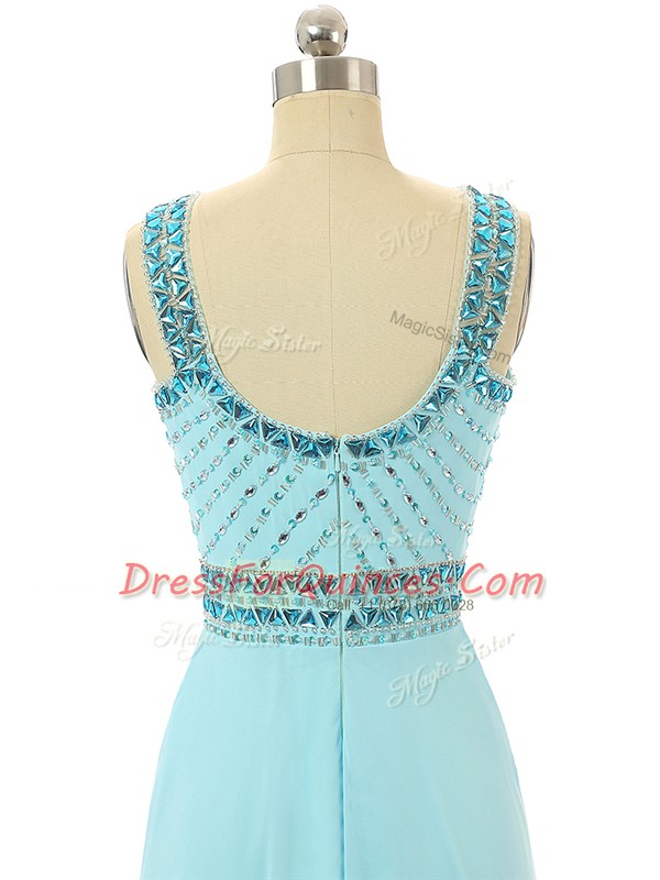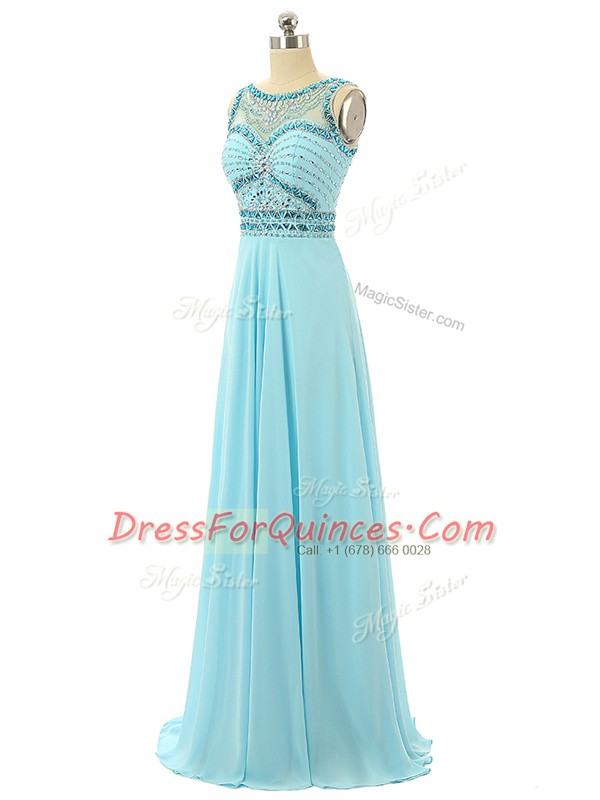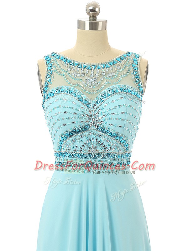 Discount Aqua Blue Prom Dress Prom and Military Ball and Beach with Beading Scoop Sleeveless Zipper