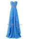 Edgy Baby Blue Sweetheart Lace Up Beading and Ruching Evening Dress Brush Train Sleeveless
