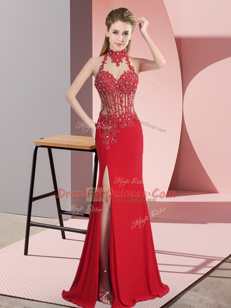 Elegant Red Sleeveless Floor Length Lace and Appliques Backless