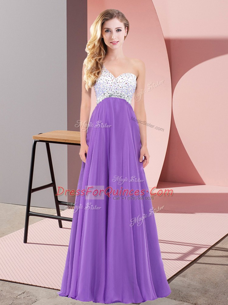 Empire Eggplant Purple One Shoulder Chiffon Sleeveless Floor Length Lace Up