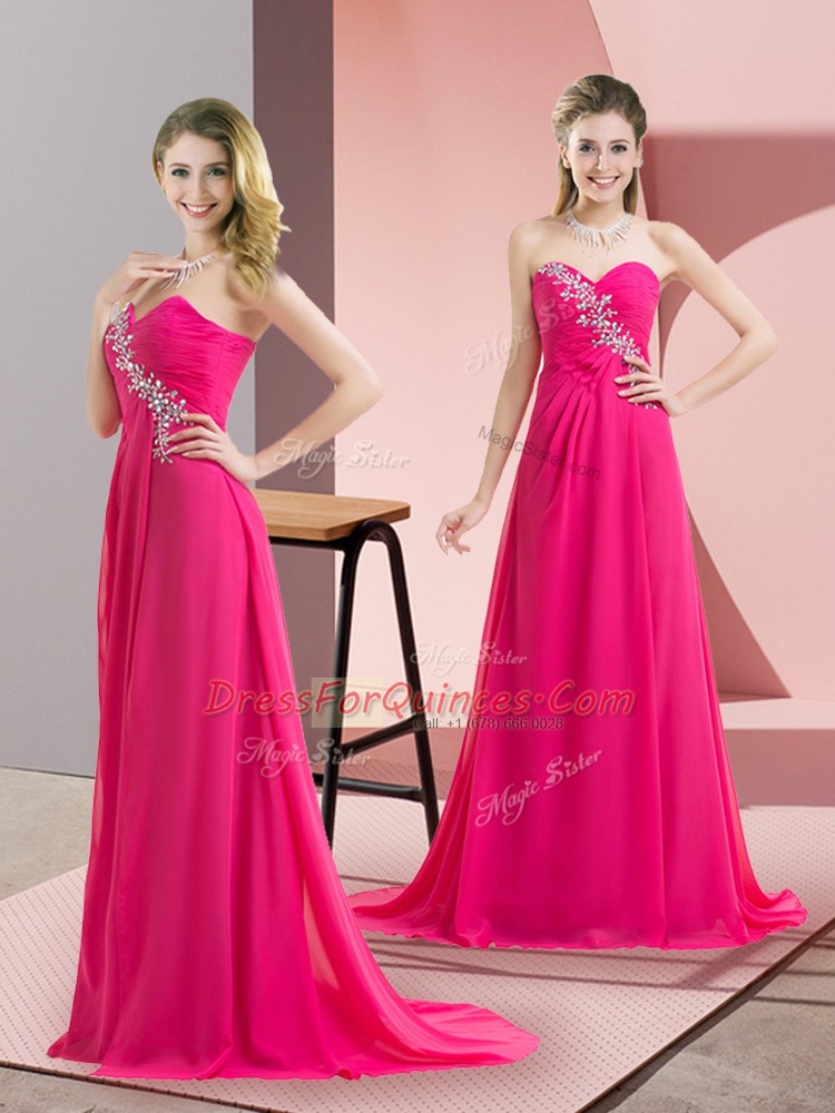 Eye-catching Floor Length Hot Pink Homecoming Dress Sweetheart Sleeveless Lace Up