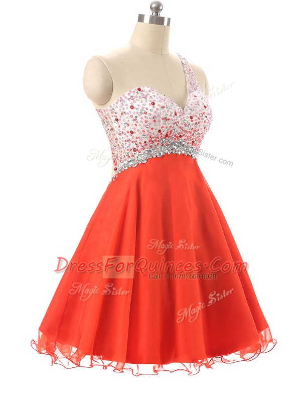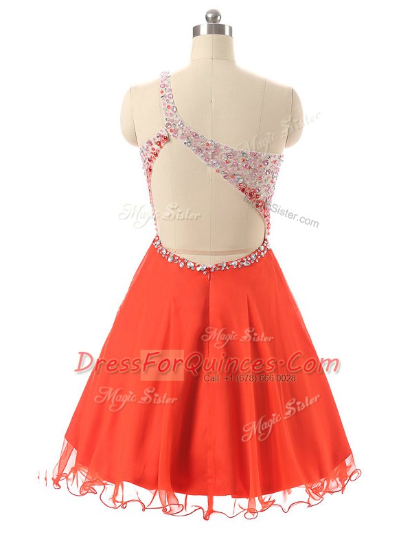 Fantastic Orange Red Backless Prom Evening Gown Beading Sleeveless Mini Length