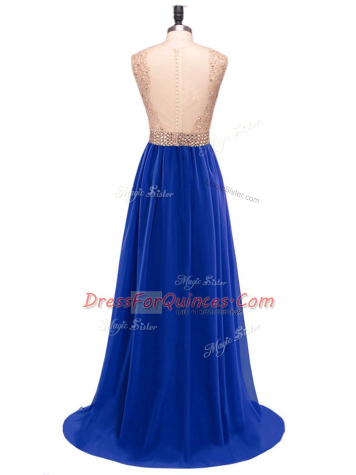 Fantastic Red Empire Scoop Sleeveless Chiffon Floor Length Zipper Beading Prom Party Dress