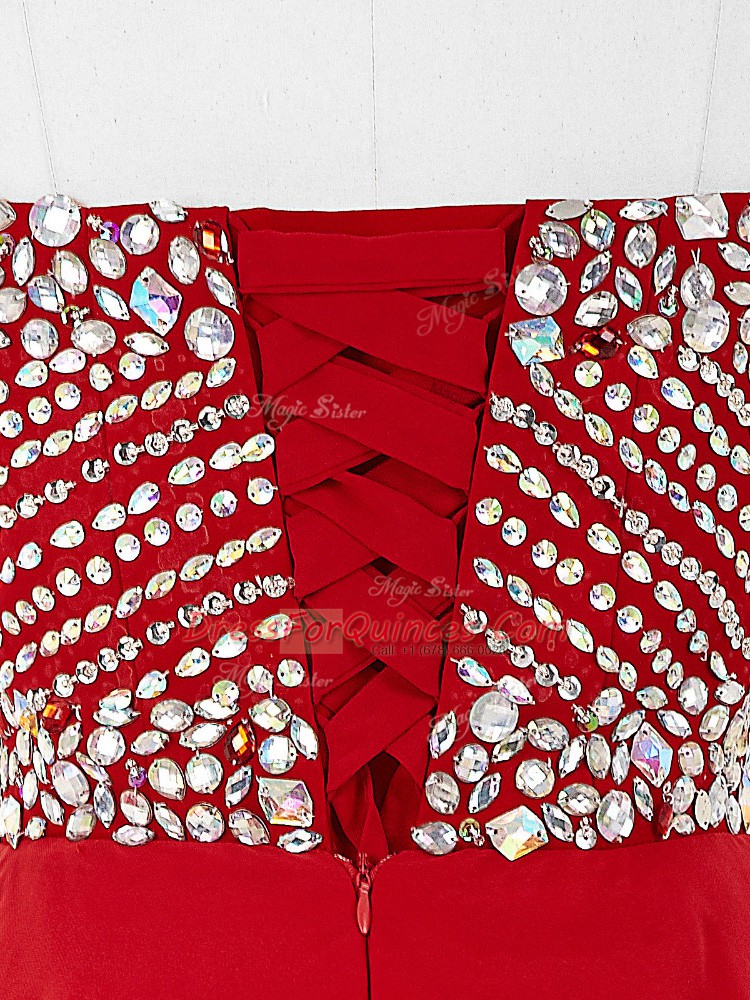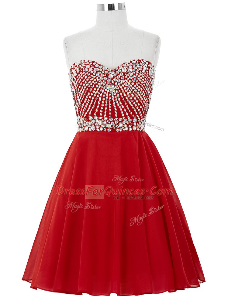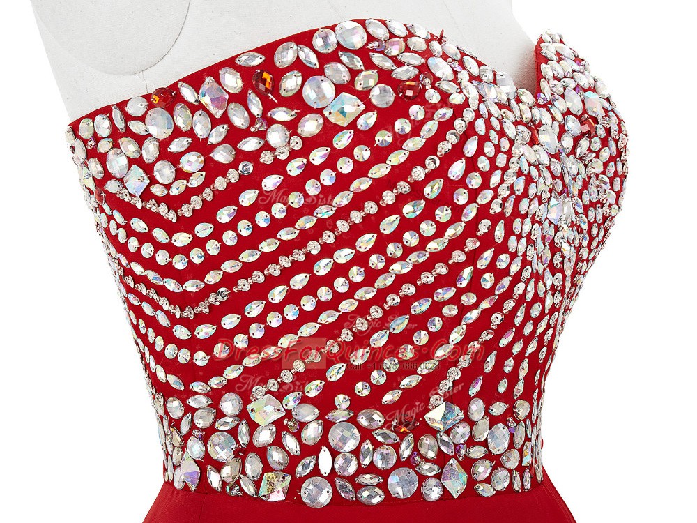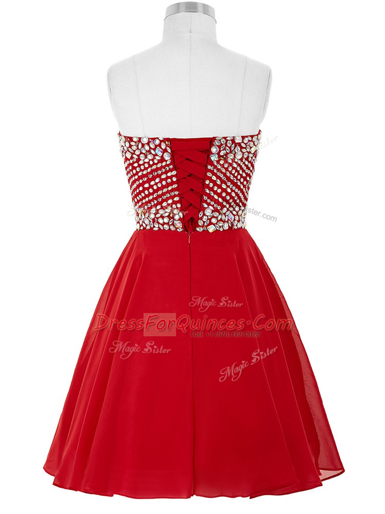 Fashion Red Sweetheart Neckline Beading Prom Dress Sleeveless Lace Up