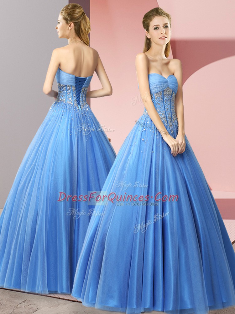 Floor Length A-line Sleeveless Baby Blue Evening Dress Lace Up