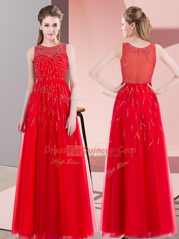 Gorgeous Red Side Zipper Scoop Beading Tulle Sleeveless