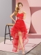 Gorgeous Sleeveless High Low Beading Lace Up Prom Evening Gown with Red