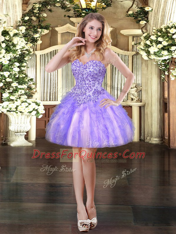 Lavender Sweetheart Lace Up Appliques and Ruffles Homecoming Dress Sleeveless